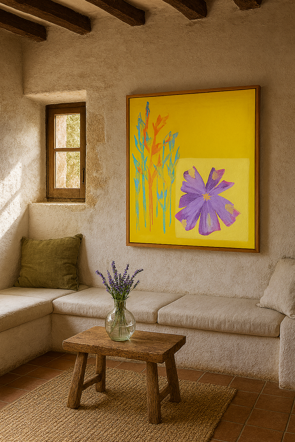 malva sobre amarillo Malva sobre amarillo Obra que forma parte de la colección botánica.La principal protagonista en esta obra es una flor de malva, la cual se encuentra sobre un plano amarillo vibrante que simboliza el amanecer. Medidas: 100 x 120 cm Técnica: Acrílico Año: 2025 Disponible Serie "Estancias argentinas " 🇦🇷 "La Fortuna" 📍Sal Serie "Estancias argentinas" "La Raquel "🇦🇷🏰 Un t Serie "Estancias de Argentina " Estancia La Candel Estudios de color, botánicos y arquitectónicos Té Elegir una obra de arte para tu hogar es darle alm Lago di Como & Lago di Garda 🇮🇹 Cada lugar parece